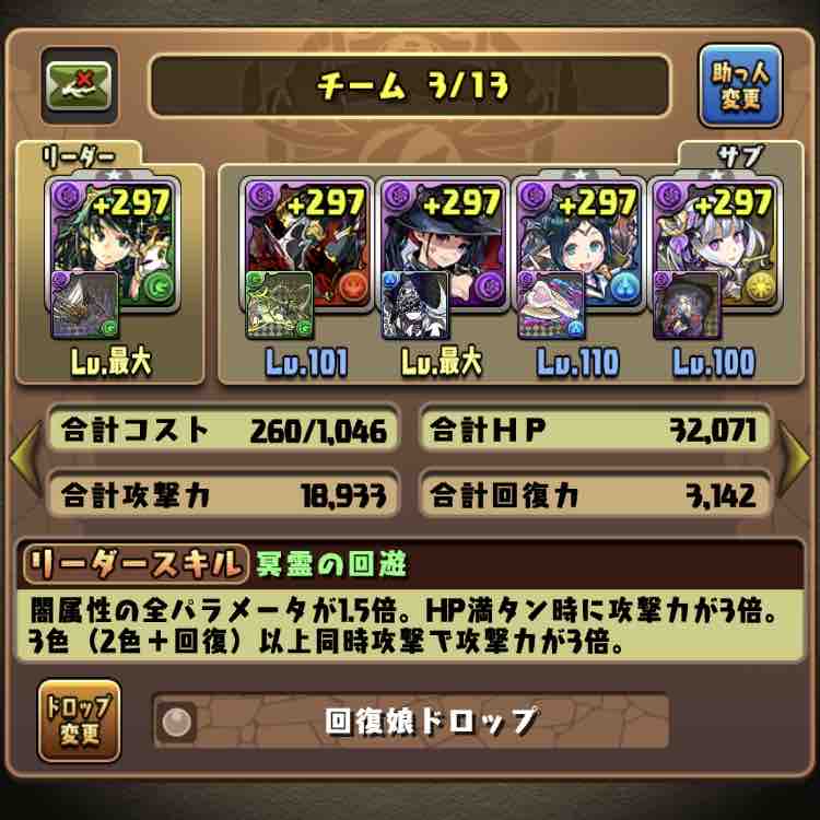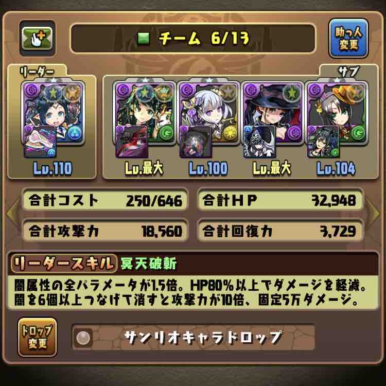 ドロップ強化の化身として生を受け、1度目の究極進化で当時強化されたドロップ強化をとりあえず沢山乗せとけ!って覚醒をもらい。